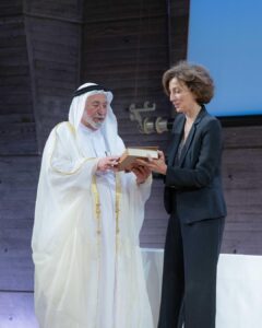 الشيخ سلطان بن محمد القاسمي يتسلم تكريم اليونسكو من أودري أزولاي