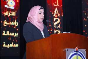 محمد تامر الجشي ووالدهليلى إبراهيم بركة تلقي كلمة المؤسسةطارق شيخ إسماعيل يلقي كلمة المدرسةجانب من الخريجين والخريجات