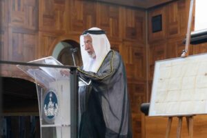 وتحدث سموه عن المخطوط الذي أهداه للجامعة، ويعود تاريخه إلى الرابع عشر من شهر أغسطس من عام 1624م، وتحقيقه، مشيراً سموه إلى أن المخطوط عبارة عن مرسوم بابوي، حرره البابا “أوربان الثامن، وختمه في كنيسة “سانتا ماريا مجوري”، لغرض جمع معونة مالية، والتي ستستخدم لصالح الأسطول البرتغالي.