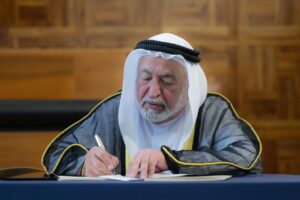 وتفضل صاحب السمو حاكم الشارقة بالتوقيع على كتاب “مرسوم بابوي للبابا أوربان الثامن، بابا الكنيسة الكاثوليكية المؤرخ بتاريخ 4 أغسطس 1624م” باللغتين العربية والإنجليزية، وخط سموه في الكتاب المُهدى للجامعة كلمات جاء فيها “أهديكم هذا الكتاب الذي وثقت فيه، بالتقصي والبحث والعدالة، كثيراً من التفاصيل والحقائق عن مرحلةٍ مهمة من تاريخنا وتاريخكم. جمعت قصاصات حقيقته من العالم، ووثقتها في الشارقة، وأتركها لكم وللمستقبل”. ويُعتبر الإهداء مساهمة معرفية تعكس التزام الشارقة بتوثيق التاريخ وتعزيز التواصل الثقافي مع المؤسسات العلمية العالمية.
