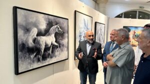 احتضن النادي الثقافي العربي مساء أمس الأول معرضًا تشكيليًا للفنان العراقي علي المعمار بعنوان “العاديات.. رؤى خارج الإطار”، و علي المعمار رسام خريج معهد الفنون الجميلة في بغداد عام 1985، وتلميذ للفنان الراحل فائق حسن، وعلى مدى ما يقارب أربعة عقود ركز جهوده في رسم الجواد العربي لما يحمله ذلك الجواد من دلالات رمزية وواقعية في التراث العربي والإسلامي، تلخصها معاني العزة والكبرياء والقوة والسرعة، ونظم للمعمار خلال مسيرته الممتدة عدد من المعارض الشخصية في عدة دول عربية، وشارك في العديد من المهرجانات الفنية. قدم في المعرض مجموعة من أعماله المتمحورة حول الخيل العربية، وذلك بحضور د.عمر عبد العزيز رئيس مجلس إدارة النادي والفنان خليفة الشيمي مسؤول الفعاليات والمعارض رئيس اللجنة الفنية ومحمد ولد سالم رئيس اللجنة الثقافيةفي النادي، و جمع  من الفنانين ومحبي الفن.