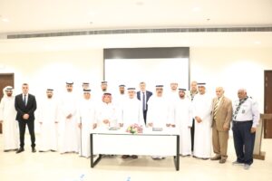 عبدالله سعيد السويدي و إبراهيم الجروان خلال توقيع الاتفاقيةالحضور