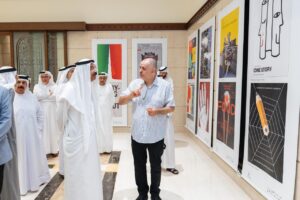 افتتح معالي محمد أحمد المرّ، رئيس مجلس أمناء مؤسسة مكتبة محمد بن راشد آل مكتوم، الإثنين 3 نوفمبر / تشرين الثاني 2025 في مقر ندوة الثقافة والعلوم في دبي فعاليات مهرجان الإمارات الدولي السابع للملصق، بحضور بلال البدور رئيس مجلس إدارة الندوة وعلي عبيد الهاملي نائب رئيس مجلس الإدارة رئيس اللجنة الإعلامية ود. صلاح القاسم المدير الإداري وجمال الخياط المدير المالي وبطي الفلاسي رئيس اللجنة الثقافية وعلي الشريف رئيس لجنة الشباب، ونخبة من المثقفين والمهتمين بالشأن الثقافي.
