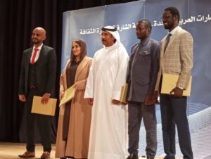 وكان ختام الإلقاء مع الشاعر محمد الأمين جوب، الذي أهدى بين قصائده قصيدة لدولة الإمارات بمناسبة يومها الوطني قال فيها: