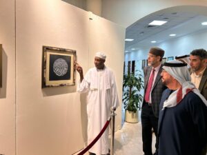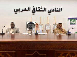 نظم النادي الثقافي العربي في مقره بالشارقة بالتعاون مع جمعية حماية اللغة العربية في الشارقة الأحد 21 ديسمبر 2025 احتفالية بمناسبة اليوم العالمي للغة العربية بعنوان “في رحاب اللغة العربية”جرى تقديم فقراتها من طرف الطالبتين المتميزتين سيلينا رأفت حامد، ولين مصطفى، و تضمنت افتتاح معرض خطي للخطاط الفنان تاج السر حسن في بهو النادي، استعرض فيه جملة من أعماله تلخص تجربته مع الفن التشكيلي العربي الأول، فن الخط، وقد تميزت هذه التجربة باستغلال مرونة الحرف العربي في صناعة الدائرة التي برع فيها تاج السر، وكذلك استغلال الحروف الطويلة لصناعة تراكيب ممتدة على نحو الأعلى إلى ما لا نهاية، كما تميزت باختراعه خط “التاج” الخاص به، وكذلك تجارب في اللوحة التشكيلية الخطية.