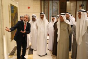 افتتح معالي محمد المر رئيس مجلس أمناء مكتبة محمد بن راشد الإثنين 12 يناير 2026 المعرض التشكيلي “عنترة في رحاب المعاصرة” للفنان التشكيلي العراقي محمود شبر، بحضور الشيخ خليفة بن حريز بن خليفة آل مكتوم، والكاتب عبدالغفار حسين، وبلال البدور رئيس مجلس الإدارة، وعلي عبيد الهاملي نائب الرئيس، ود. صلاح القاسم المدير الإداري، وجمال الخياط المدير المالي، وعلي الشريف رئيس لجنة الشباب، ود. محمد سالم المزروعي عضو مجلس أمناء مكتبة محمد بن راشد، ود. نجاة مكي ونخبة من الفنانين والمثقفين والمهتمين.