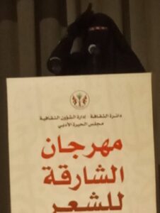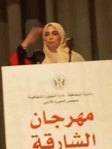 وكانت الشاعرة ريم الجنوب آخر من ألقى، فأسمعت الحضور قصائد معبرة تشف عن اعتزازها بالبداوة حاملة تحية النيل إلى الشترقة (أهل البداوه، ترحيبة) تقول في قصيدتها “ترحـيبة”: