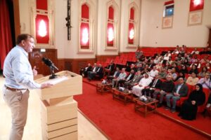 بعدها اعتلى المنبر الشاعر محمود صالح فألقى بأداء لافت عددًا من قصائده التي اتسمت بالاهتمام اللغوي والصيغة البلاغية مع عمق المضمون والدلالة. يقول في قصيدته “دروشة”: