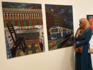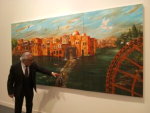 عمر هبرة أمام لوحتهنرمين هاشم ولوحتاها
